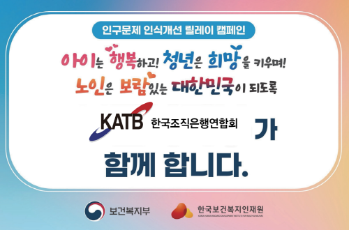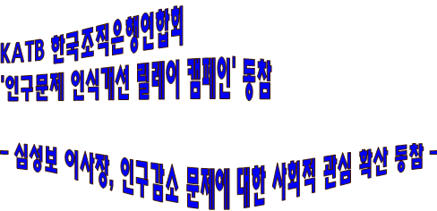 제목 | KATB 한국조직은행연합회, '인구문제 인식개선 릴레이 캠페인' 동참 | ||