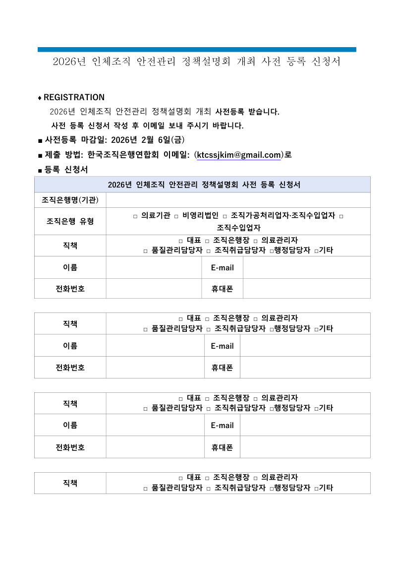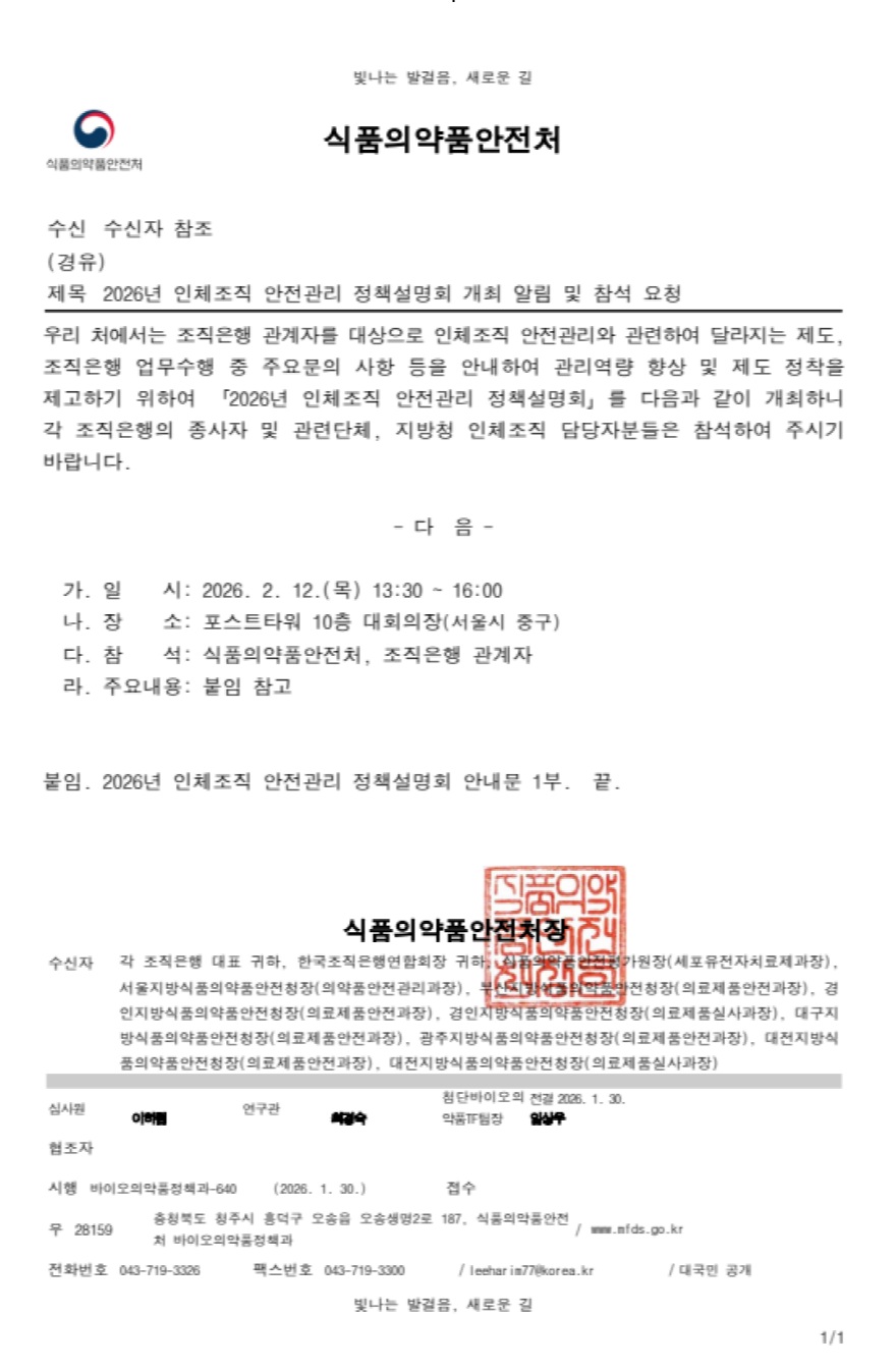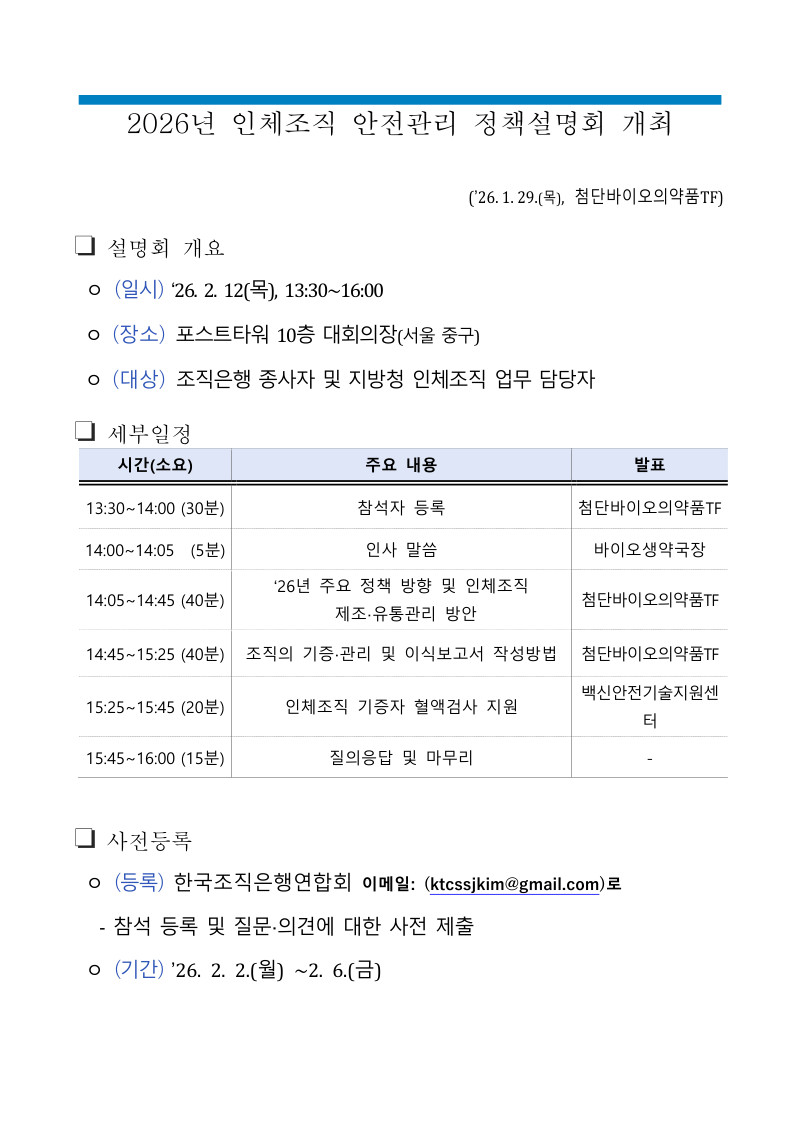제목 2026년 인체조직 안전관리 정책설명회 개최 사전등록 신청 안내